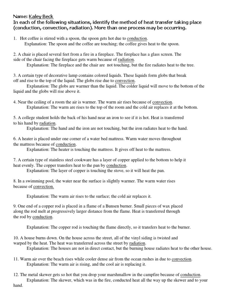 Science Heat Transfer Worksheet Answers / Methods Of Heat Transfer Answers -